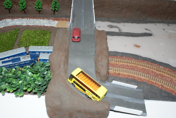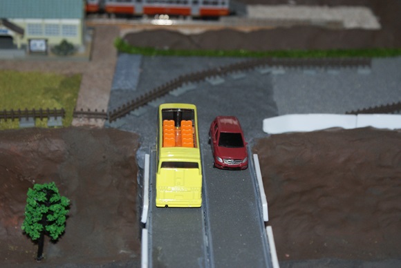 トミカ「はとバス」は縮尺が 1/156 でジオラマの縮尺とほぼ同じだからです