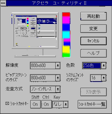 ディスプレイ設定は 800 X 600 256色に設定しています