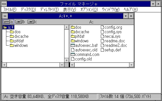 Aドライブ = HDD(MS DOS 6.2 + Windows3.1)