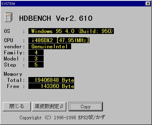ベンチマークソフト HDBENCH 2.61 による CPU、メモリの測定結果