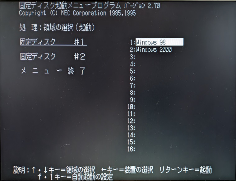 Windows2000 と Windows98SE のデュアルブートにしています