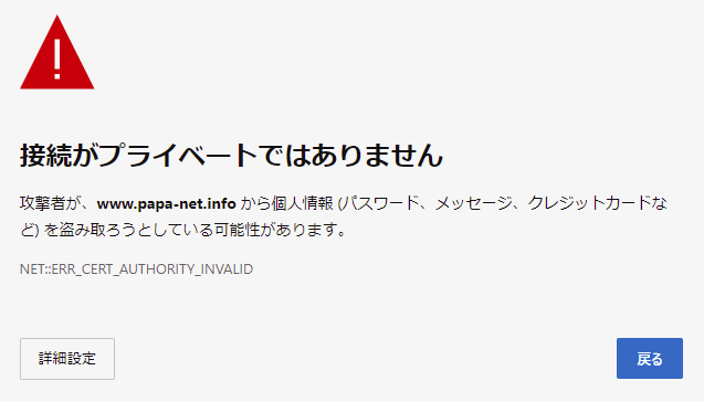| Macrosoft Edge の場合は『詳細 設定』をクリックし再表示されたページの一番下にある『<サーバードメイン名>に進む(安全ではありません)』をクリック | |